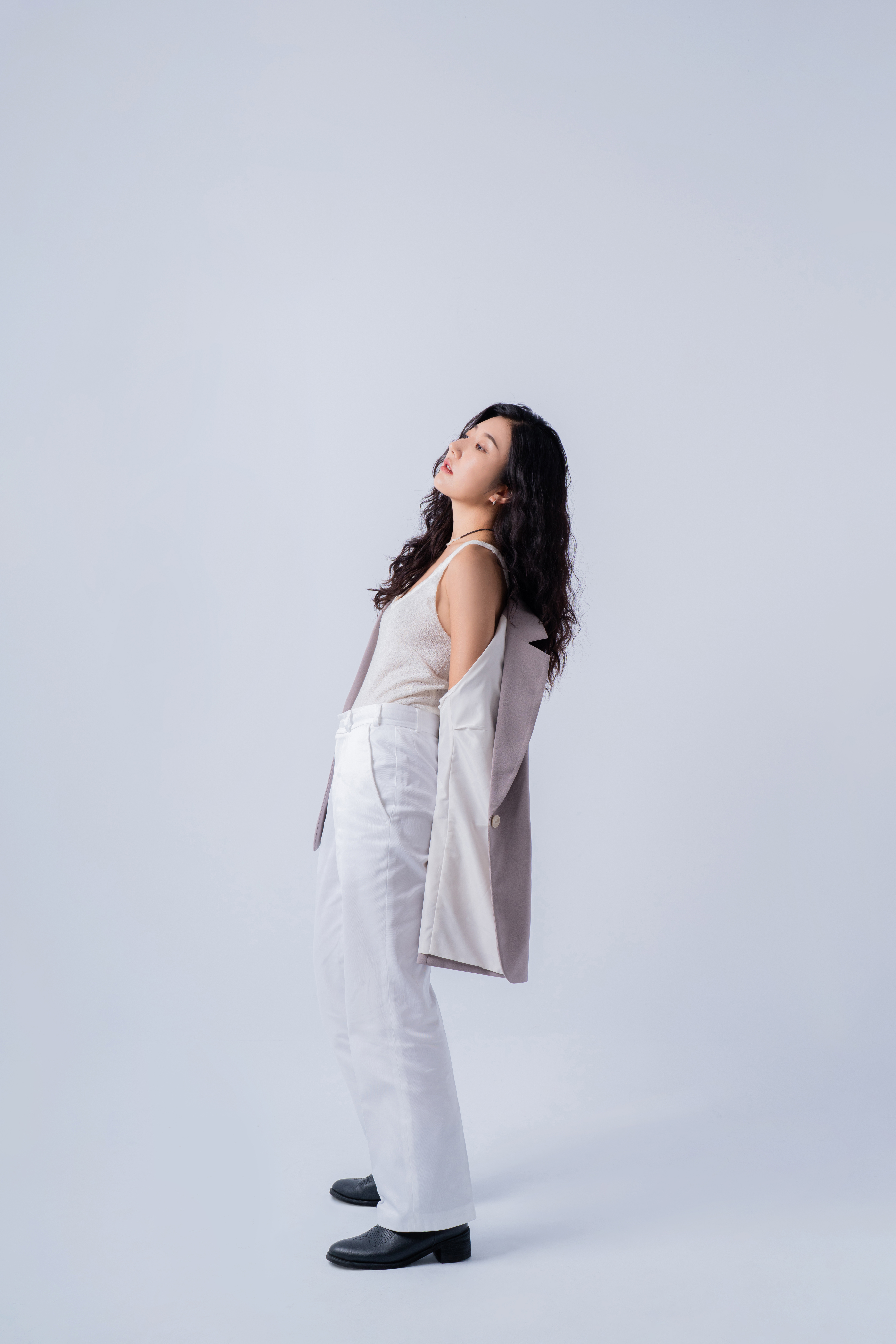 上衣 : 黑白素色上衣或裸上身