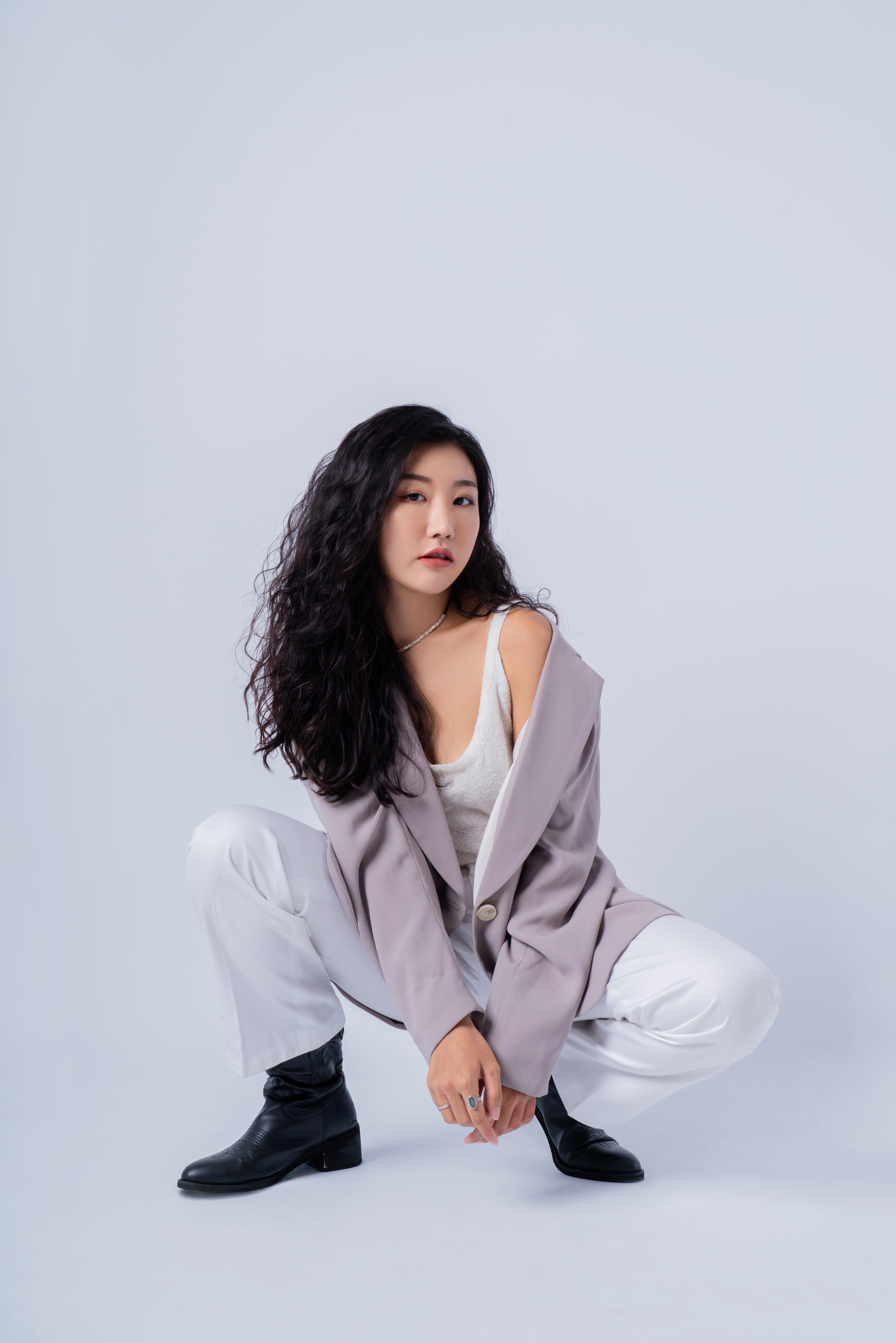 上衣 : 黑白素色上衣或裸上身